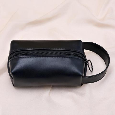 Moda yumuşak PU deri kozmetik kadınlar için fermuarlı çanta kolu seyahat makyaj çantası