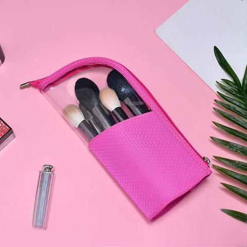 Basit ve şeffaf makyaj çantası PVC göz farı fırçası taşınabilir saklama çantası